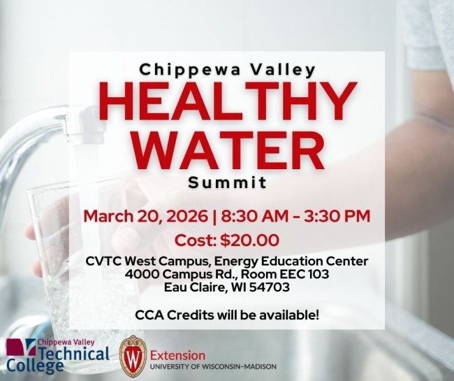 Join us for a full-day educational event focused on protecting and improving water quality in our region. The Chippewa Valley Healthy Water Summit brings together researchers, Extension educators, and local professionals to share practical, science-based information you can use at home, on the farm, and in your community.