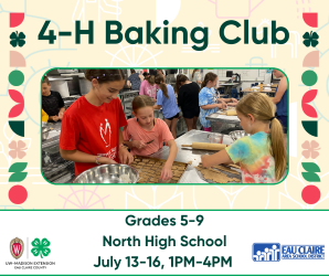 This is a partnership program between 4-H and the Eau Claire Area School District. Participating in this 4-H Baking Club will enroll you in 4-H and allow you to participate in other 4-H activities if you would like to do so.